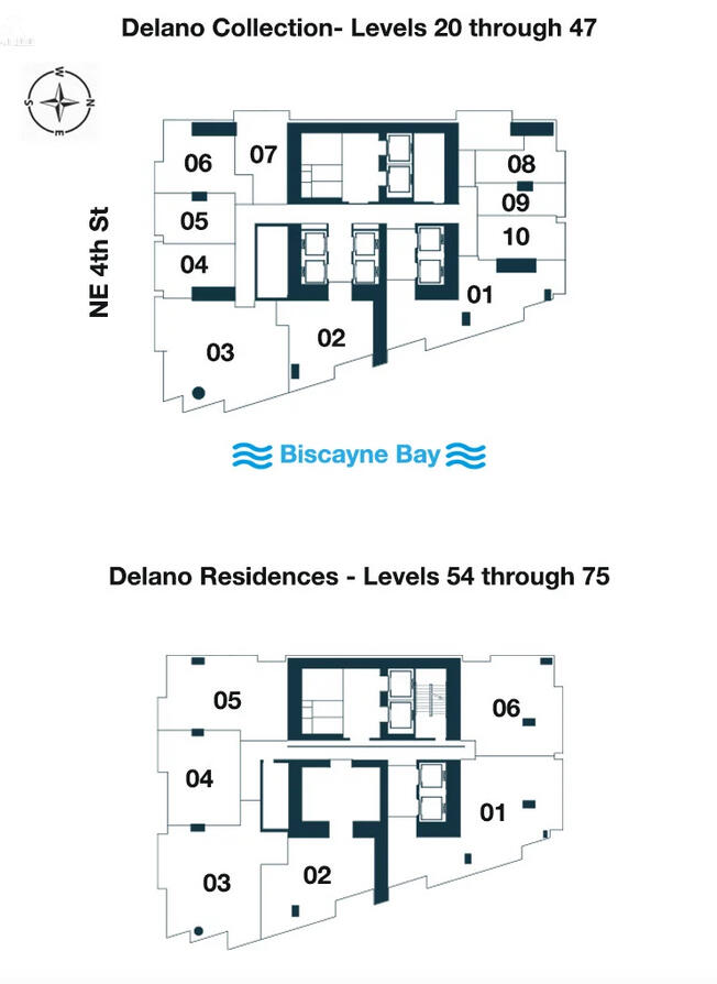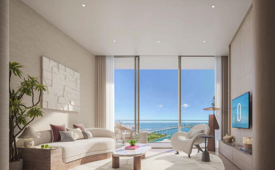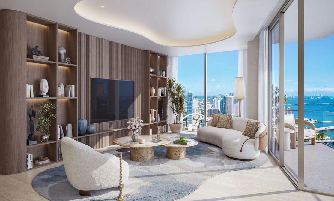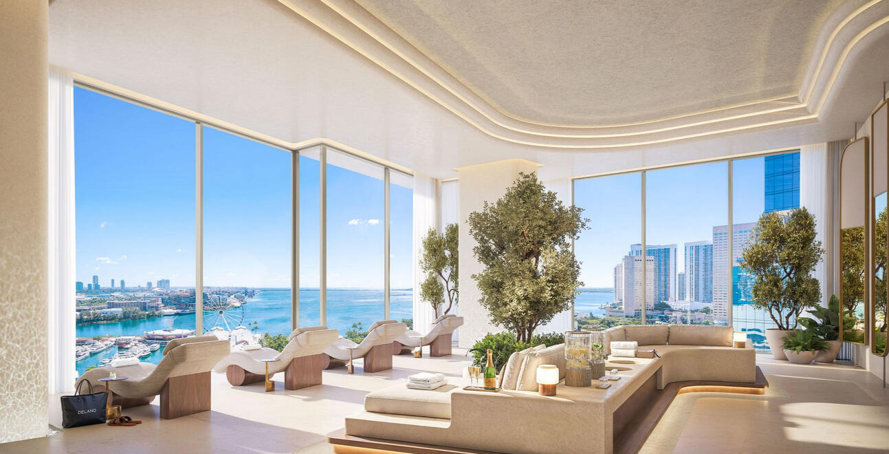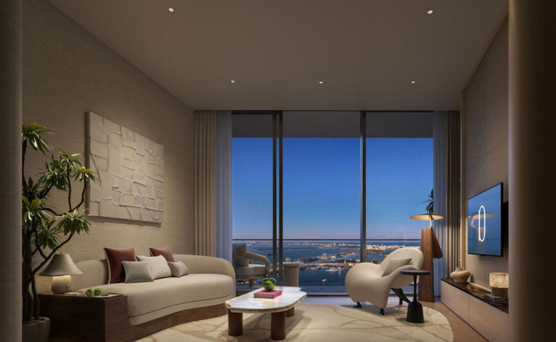 -Colección D (pisos 20 al 47) – Estudios y residencias de 1 y 2 habitaciones, totalmente terminadas y amuebladas*, con techos de 9.6 pies de altura- Residencias D (pisos 49 al 75) – Residencias de 1, 2 y 3 habitaciones, completamente terminadas, con techos de 10 pies de altura, que incluyen espacio de oficina con escritura- Todos los interiores residenciales están diseñados por el galardonado estudio de diseño de interiores Meyer Davis- Ventanales de piso a techo con impresionantes vistas a la ciudad, el skyline del downtown, Miami Beach y el océano Atlántico- Clósets completamente equipados en todas las residencias, curados por Meyer Davis- Paquete de iluminación contemporánea- Tecnología de hogar inteligente que ofrece una personalización fluida con solo tocar un botón
