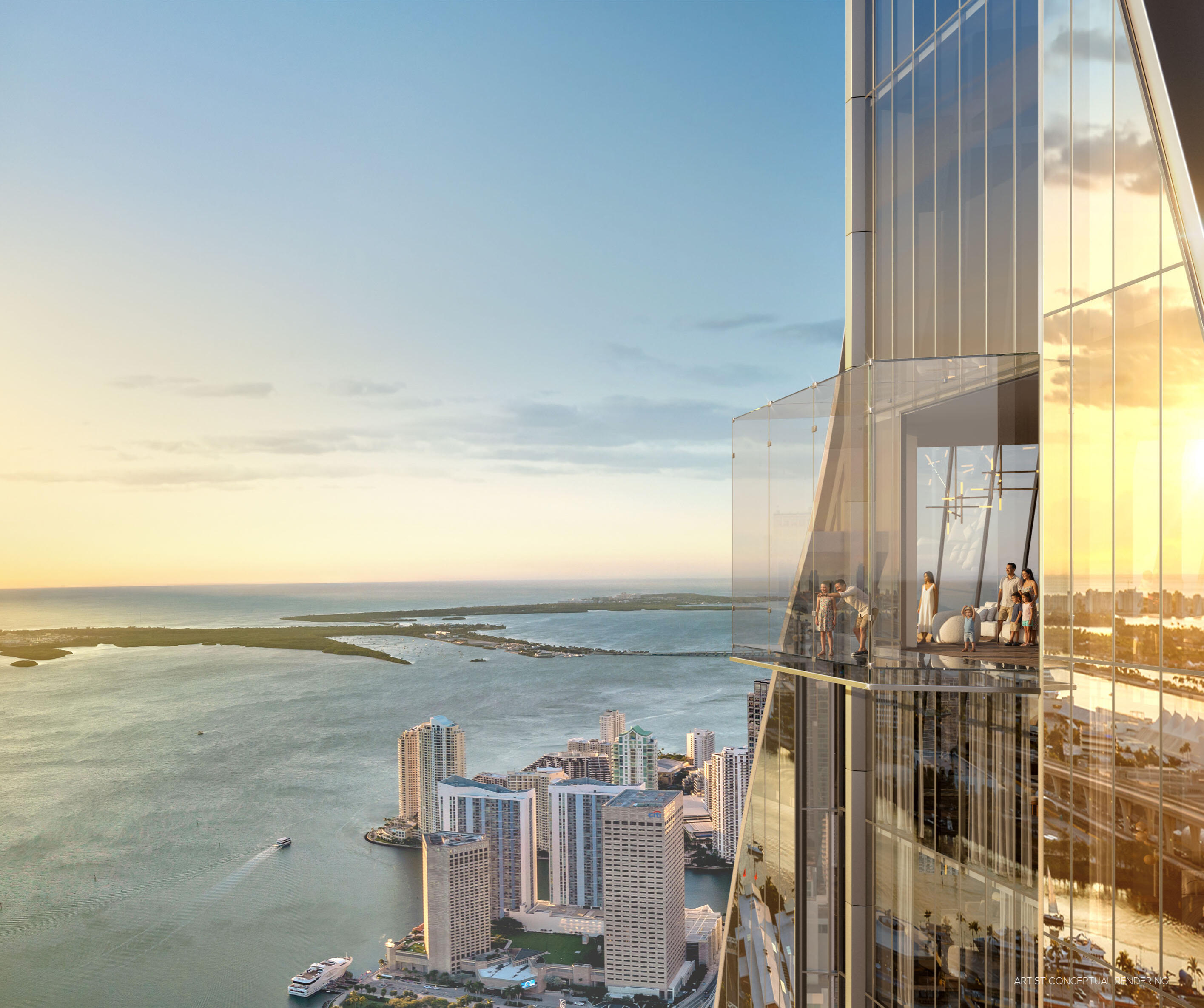 - Torre de 90 pisos con 421 residencias completamente terminadas- Vistas despejadas al Downtown Miami, Miami Beach y el océano Atlántico- El primer mirador de Miami, ubicado en los niveles superiores- Dos restaurantes emblemáticos, incluido un icónico restaurante en el cielo- Legendary Rose Bar- Amenidades inmersivas, que incluyen: dos piscinas estilo resort,